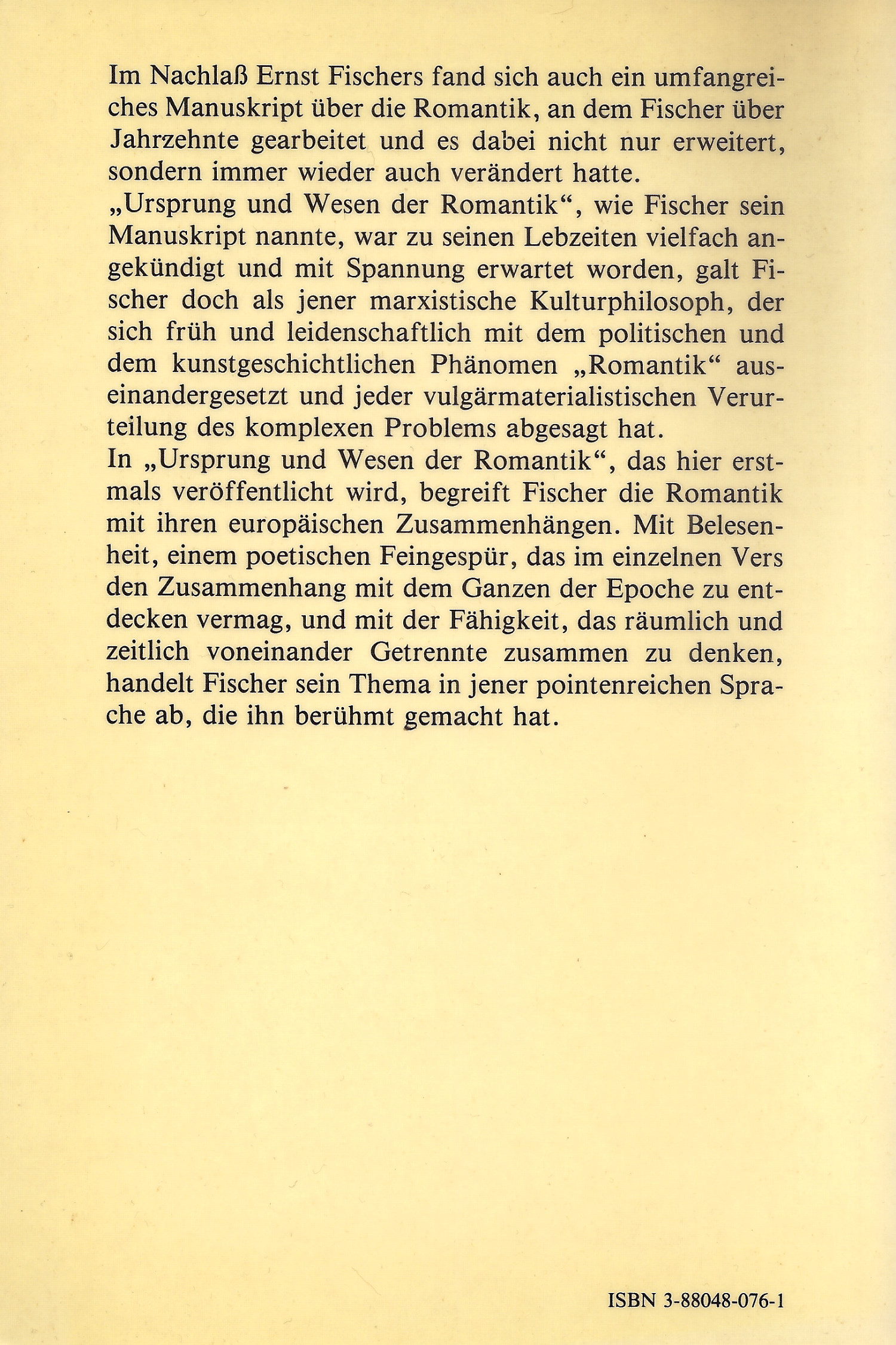 Ernst Fischer: Ursprung und Wesen der Romantik