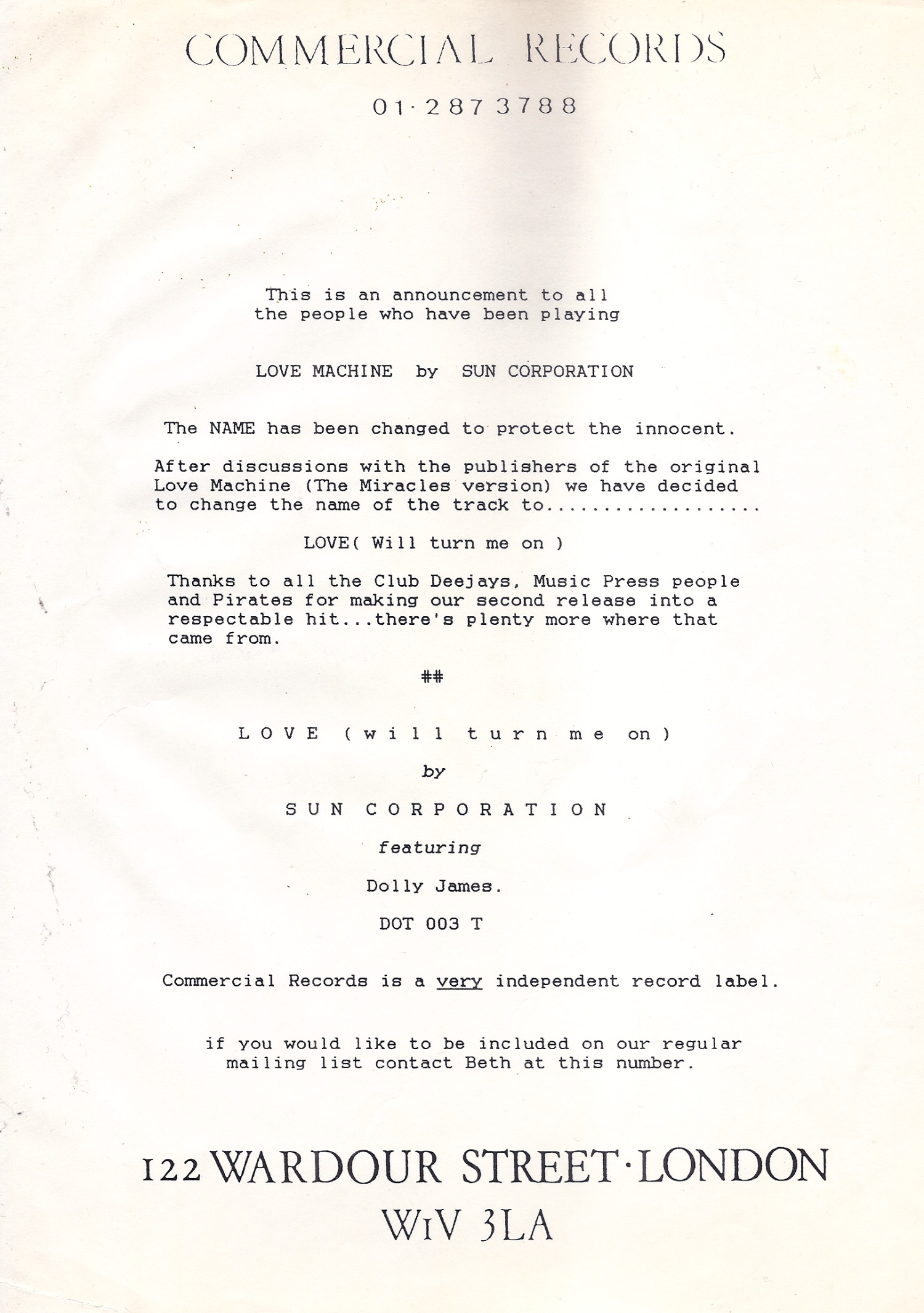 The Sun Corporation feat Dolly James: Love Will Turn Me On