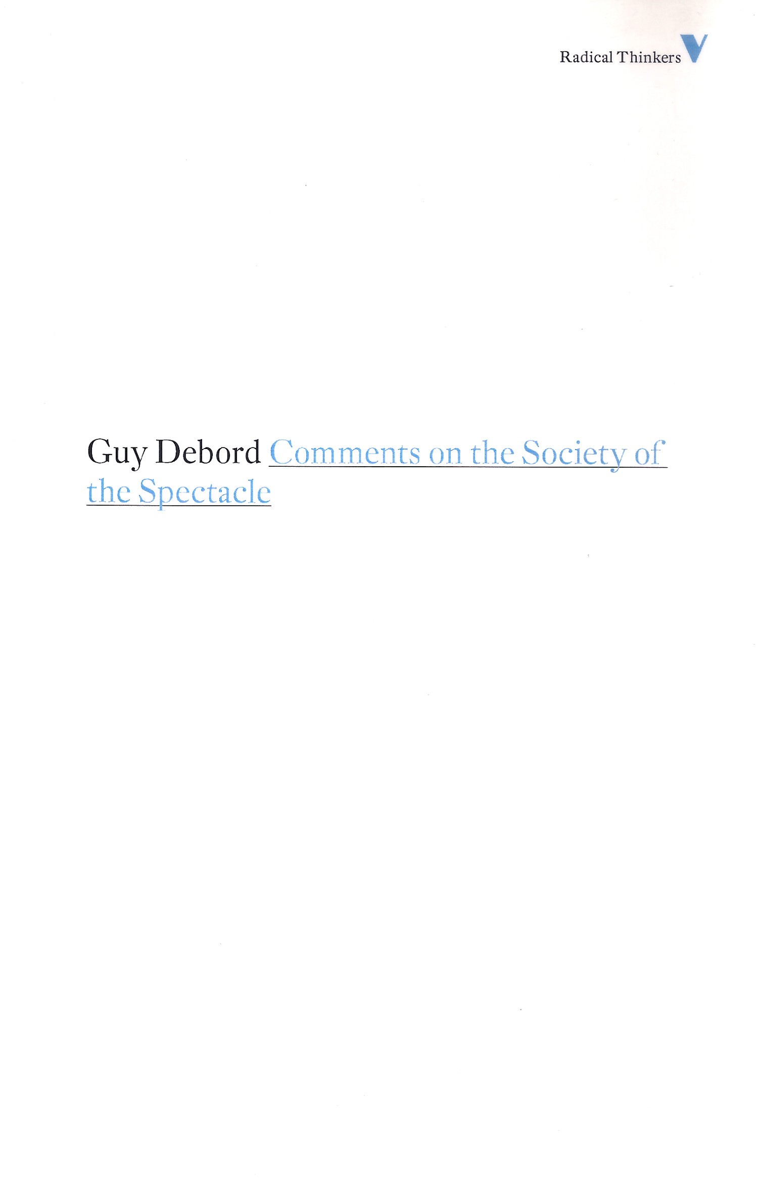 Guy Debord: Comments on the Society of the Spectacle. In the Verso series "Radical Thinkers" 1998. ISBN 978-1-84467-672-9